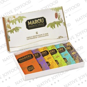 Marou è il primo bean-to-bar del Vietnam, con controllo totale della filiera e una attenzione speciale a ogni singolo dettaglio, come le confezioni fatte a mano una a una. Marou lavora direttamente con i contadini per creare le sue tavolette mono origini, ognuna da una diversa regione del Vietnam, ognuna con il suo sapore peculiare. Il cioccolato Marou in brevissimo tempo è riuscito a conquistare numerosi premi internazionali e a distinguersi per qualità e gusto nel panorama dei migliori cioccolati gourmet.