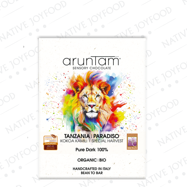 Ursprung: ARUNTAM – Sensory Chocolate ist eine „Geschichte“ der Leidenschaft und des Mutes, ein originelles Produkt, das Emotionen bei denjenigen weckt, die es kosten, mit direkter Kontrolle der gesamten Lieferkette. Die Tafeln werden in einem Verfahren hergestellt, das die wertvollen Zutaten so wenig wie möglich belastet, um ihre organoleptischen Eigenschaften so unverändert wie möglich zu erhalten.