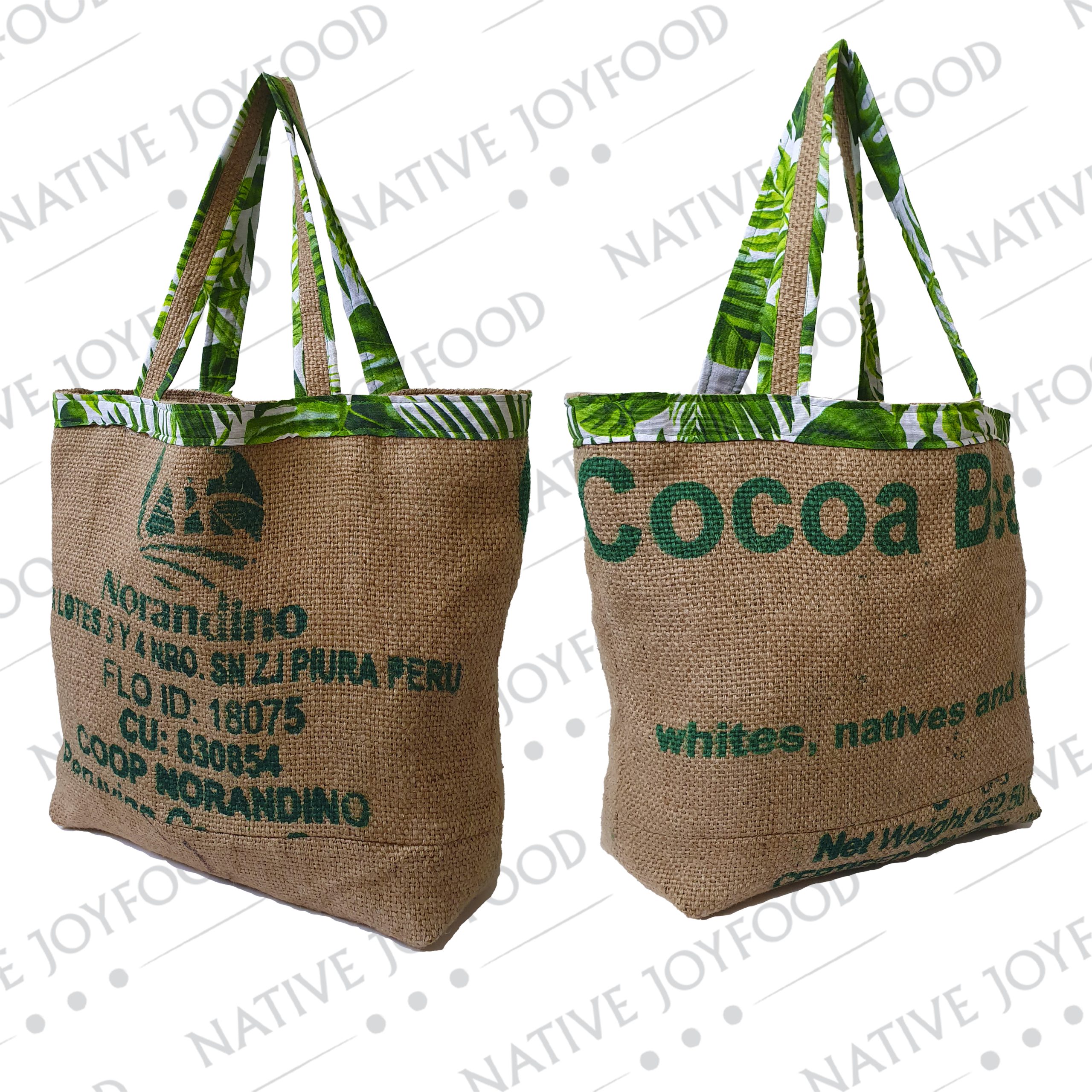• Cosa è: borsa realizzata con sacco di juta riciclato, materiale semplice, ma carico di storie, quelle dei coltivatori e dei lunghi viaggi che rendono possibile uno dei cioccolati che amiamo: Aruntam Piura Albino Peru 72%. Questa tote bag è un pezzo unico, che unisce l’estetica grezza della juta a finiture sartoriali. In questo modo porterai con te, un accessorio sostenibile, autentico e irripetibile. È più di una borsa, è un frammento del nostro mondo artigianale da portare sempre con te. • Come è fatta: Materiali: esterno in juta riciclata, fodera in loneta. Bottone a calamita. Tasca interna. Misure: Lunghezza 35 cm. x Profondità 15 cm. x Altezza 38cm. • Per maggiori informazioni o per conoscere le borse disponibili o gli altri prodotti in lavorazione, contatta Native Joyfood.